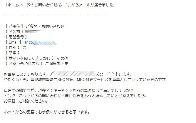お問い合わせのページに、「営業メールはお断りください」と書いてある。それでも送ってくる業者がいる。却って自社のポイントを下げていると思うのだが・・・・。