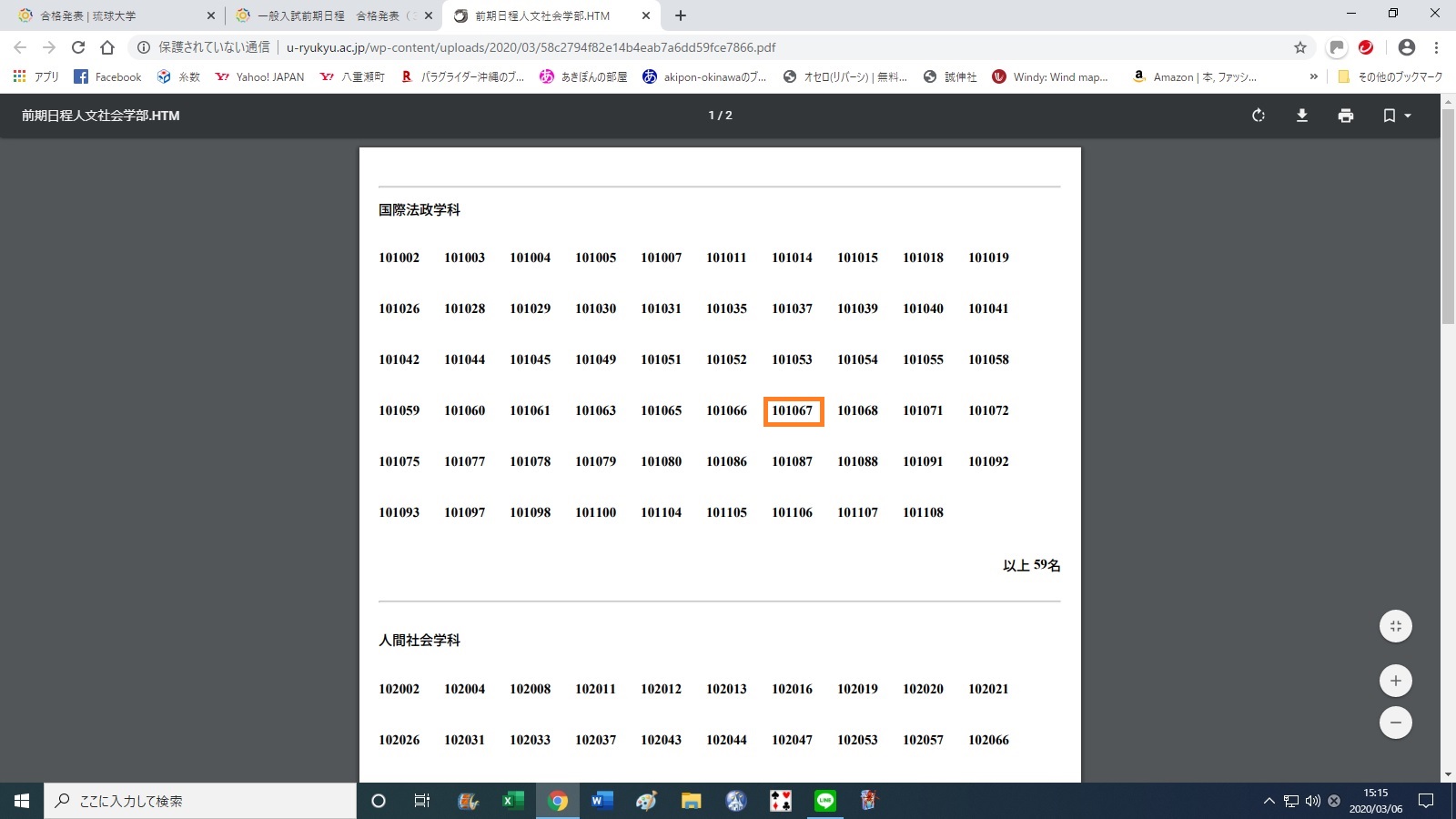 今年は琉球大学2名、沖国大2名、徳島文理大1名合格です。(延べ人数)