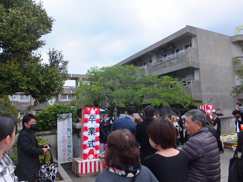本日は中学校の卒業式。東風平中学で塾の卒業生を探した。2人しか見つけられず。でもみんな卒業おめでとう。