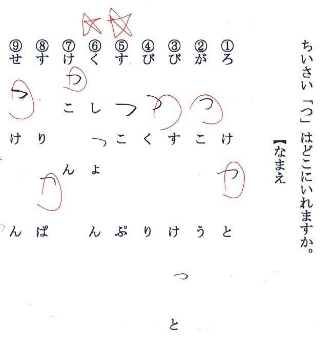 5年前の1年生。大人にとって簡単なことでも小1にとっては難しい。小さな「つ」をどこに入れるか!?